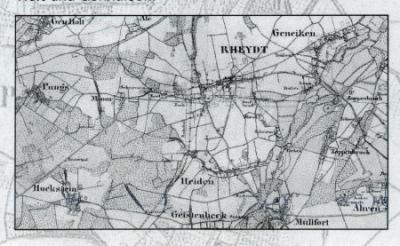 Umrahmt von umfangreichen Wäldern, weitab vom Zentrum der Stadt Rheydt, lag idyllisch die kleine Dorfgemeinde: Im Süden von Buchenwald (Dreeschke). Im Westen den "50 Morgen" (Fichtenwald) und anlehnend Buchen‑, Eichen‑ und Birkenwald, war das Dorf eingeschlossen.